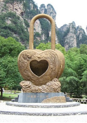 中华第一同心锁,中间挖空的位置可以站进去,很多恋人都到里面去拍照