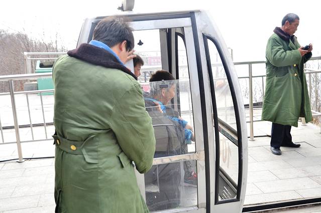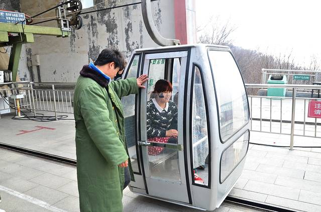 这西门缆车的轿厢,也太破了吧?每个轿厢几乎都一样的四处漏风,比敞篷也强不了多少,四月中的天气,我套着绒衣穿着皮夹克冻够呛;最主要的是,很多玻璃不光是有裂痕,大多是碎的露出尖利的玻璃碴子!