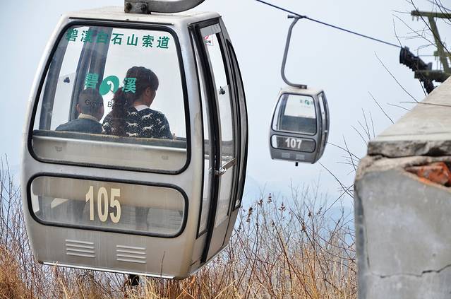 离开玻璃栈道再前行,就离白石山西门缆车处不远了,票价是65元,够贵!(你也可以选择步行下山,也不是很累)。