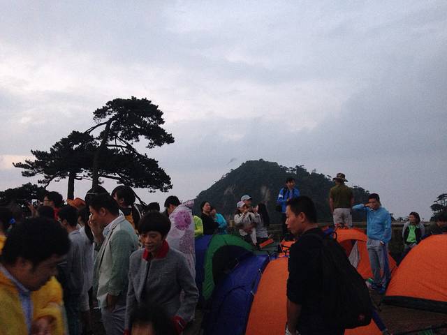 凌晨4点起床准备出发去玉台看日出,玉台是三清山一个很好的日出观赏点,露营地到玉台大约15分钟路程,天很黑,自带手电筒。(日出大约在5:40左右,但玉台地方不大,为了占据最佳观景地形,不得不起早,如果在玉台露营,那么早上出了帐篷就可以观赏日出)。由于天气原因,没有看到真正的日出,等了1个半小时,看到了太阳升起。