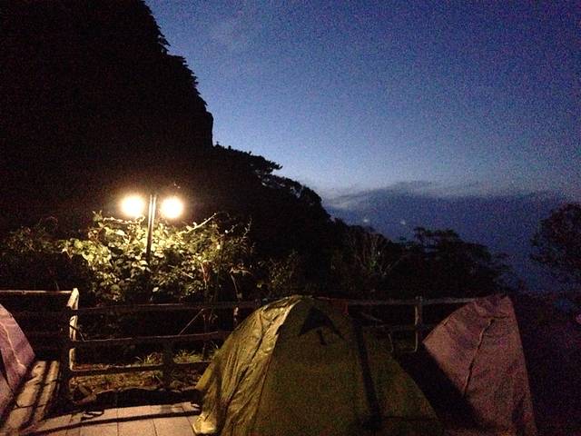 一路上拍照停停走走,到达露营地是5点, 店主会帮你搭好帐篷,一切完成后可以吃晚餐补充体力了,(如果你租住帐篷,店主会提供你热水)吃完晚餐可以在周围走走逛逛。杜鹃谷露营地有地方洗热水澡,山上的冷水很冰,晚上睡觉时切记把鞋子放在帐篷里面,山上露水很重,第二天帐篷顶、露天的桌子上等地方都是湿漉漉的。