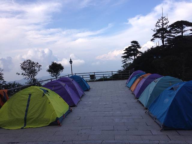 我们选择在山上露营,准备第二天一大早看日出。山上的宾馆很贵,大约400-500一晚,我们之前在淘宝上预定了三清山杜鹃谷的双人帐篷,128元/晚,还提供免费早饭。(三清山上有三个露营点:三清宫、杜鹃谷、玉台,可根据自己需要选择)