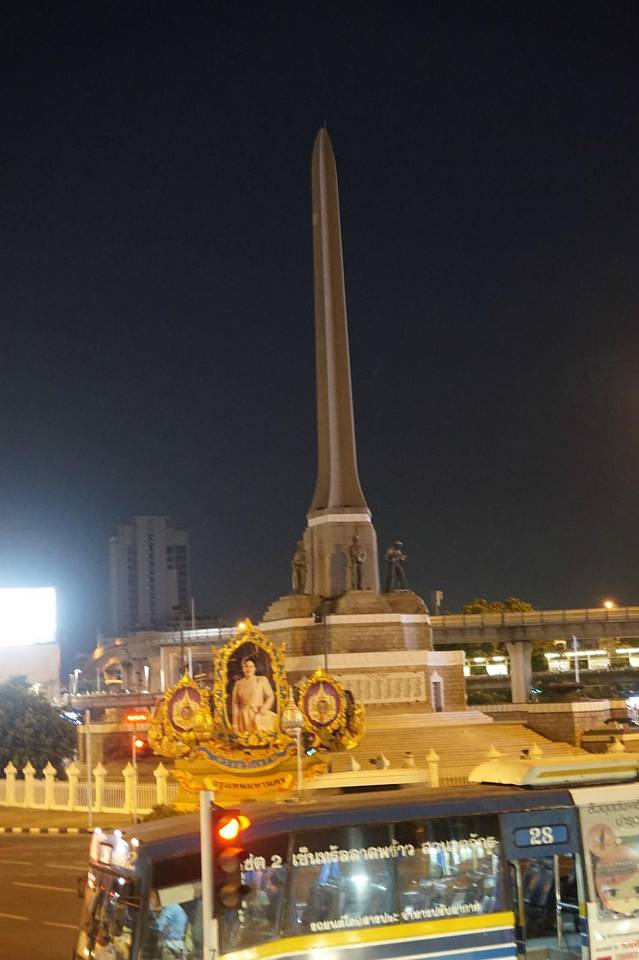 然后我们在附近吃了碗类似麻辣烫的粉丝,开始逛开,四处走走走,这里的东西比其他地方要便宜,就算是一样的超市,很可惜我们因为要去清迈啥也没买……后来还去了胜利纪念碑,不能进入,只能远观,曼谷人超级多啊, 车子也好多,尾气也蛮重的……而且感觉跟在国内没啥太大差别,一点也没有什么惊慌失措的感觉,就像在家门口走路一样……我们在天桥下的小摊还买了一大块榴莲,100泰铢,吃到腻……回酒店我们没有迷路,一路上看着泰国人吃吃喝喝,感觉生活习惯和中国人差不多嘛,唯一差别是,他们喜欢吃生豆芽生菜叶……