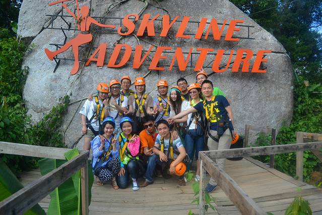 看完大象表演,我们又急匆匆地赶往丛林飞跃的场地,如果下午不参加丛林飞跃的话,导游还会带你去兰花园和水果市场,但是我们就错过啦……跟着其他散客一起凑团去丛林飞跃的场地,也是丰田商务车,路途非常久,而且是开到山上,坡度很陡,真心佩服司机啊……过去有一餐自助餐,其实就是自助咖喱,只有两种选择,味道还可以,水果倒是好吃,菠萝蜜随便吃,但是怕飞跃的时候会吐,所以没敢吃太饱,林区会送你一瓶水,一块小蛋糕,放在一个小包包里给你背着,事实证明,非常重要,因为我到一半的时候真的饿了……我们飞跃的是43个平台,差不多3小时……我跟老颜选择了跟拍,800泰铢,过程中自己很难拍照,跟拍的确是个不错的选择,虽然后面看来吧照得也不是很漂亮,但是还蛮好玩的啊~拍照的是我们其中一个教练,工作名叫古天乐,很温柔;另外一个叫古巨基,非常活泼而且风骚,喜欢故意吓唬人,就因为他不断地甩缆绳,以至于我在滑索的时候卡在中间过不去了!!!!之前老颜卡的时候还在笑她,轮到自己真是有种莫名的喜感,古天乐马上举起相机先拍了一张,然后跟古巨基一起爬过去把我拉到另一个平台上……什么古天乐古巨基是不是看起来好喜感?那么我告诉你,整个林区的工作人员的名字都是明星的名字,还有叫李晨的,说他女朋友是范冰冰……简直笑爆了……刚开始滑索觉得好可怕,实在太高了,后来越滑越爽,一边滑一边看风景,简直太美好~但是有两个垂直的滑索,一点都不美好,因为之前摔倒跌到屁股,只要一顿一下,尾骨会好痛,所以垂直的时候真的好痛啊,不过后来我跟教练说慢一些,真的就慢慢放下去,其实慢慢放他们得拉住绳子,需要很大的力量,绳子摩擦力也很大,很辛苦,所以其实他们还是非常不容易的啊……结束后我们每个人都给了100块小费,就当是照顾我们感受的小费吧~