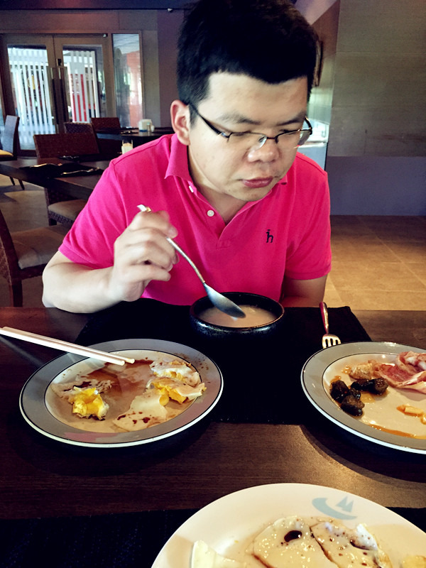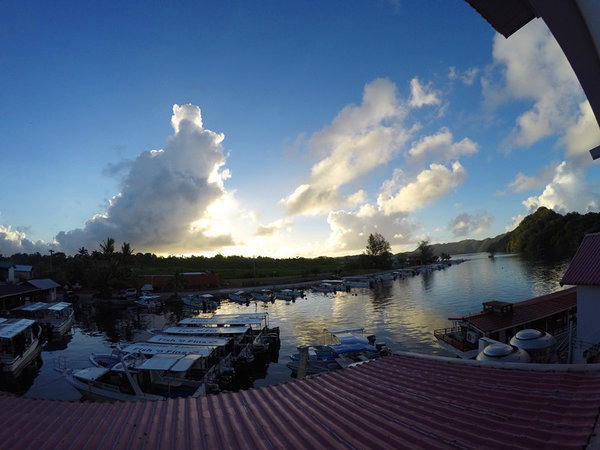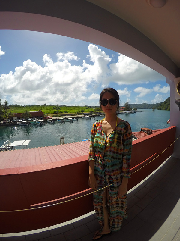 酒店:我们住的是月半湾酒店(Landmark Marina),前面说过,我们是买机票送酒店,本来是不抱多大希望的,就网上看了下照片,感觉还行就订了,而且去帕劳基本上都是出海玩,在酒店的时间就是睡个觉而已。到了酒店,才发现我们住的房间前后都有海,确确实实的海景房啊,而且住这个酒店的团队比较少,更清静,这是我很喜欢的,房间还有阳台晾晒衣服,酒店的早餐也很好吃(就是下面的那几排红房子),距离出海的码头很近,唯一不足的地方应该就是房间设施略陈旧,但也足够干净卫生。