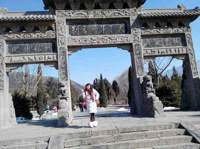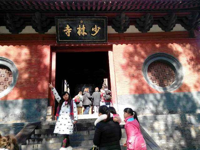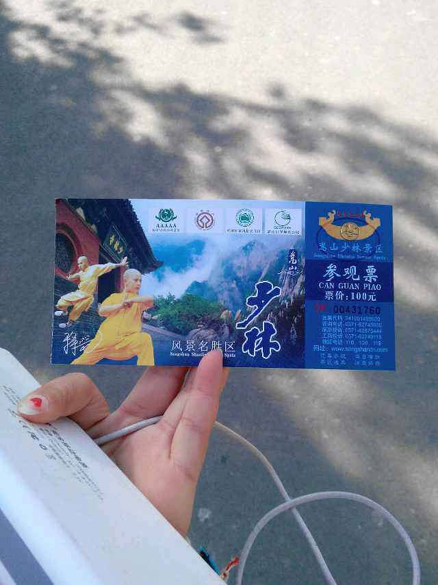 第二天,爬起来,一个人又开始旅行,因为老板娘说汽车站不远,驴友特性,又开始走起来,路上看到卖手抓饼的,赶快尝试一个,赶到汽车站,买了去登封的车票,23,到了那里还需要做个车去少林寺,到了景区,买票,100,一个人没人拍照,赶快找到两个也在这玩的,约伴一起,终于有人拍照。走进去没多远,设置一个看少林功夫表演的地方,门票包含,但是到的时候晚了,上一场已经完了,而下一场还下午2点,下午5点,太久了,于是继续进去看少林寺去。