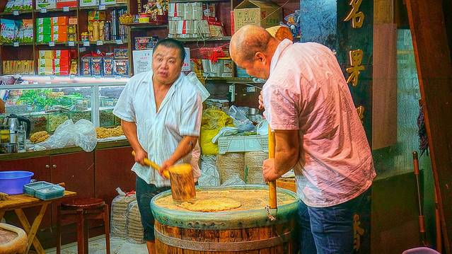 师傅卖力的打糕.