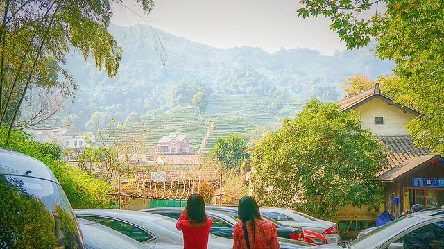 中午来到了龙井村.韩国美女特地穿了一身红.就是为了在照片里凸显她自己.