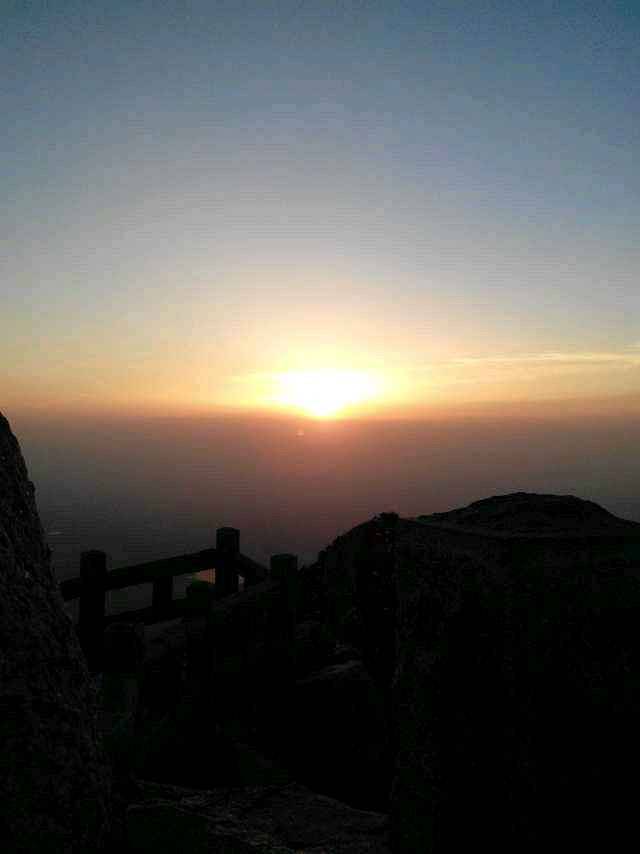 终于有人喊,可以走上日观峰去等日出了,于是我们就又开始走了,那风吹得脸啊!都快僵了,幸好有云南的那件披肩,蛮防风,但是手套是南方的,根本挡不住北方的寒冷,只能踹兜里暖暖,幸好我找的地方有块石头挡风,当太阳出来的时候,现在的手机还必须热感,把手拿出来,两三秒之后就像要截肢一样,僵了,又踹兜里暖暖,幸好太阳出来慢,更离谱,我手机都直接冻关机,只能也暖暖在拿出来开机,又拍下,如此反复,心里在想,我这是自做死啊!呵呵,