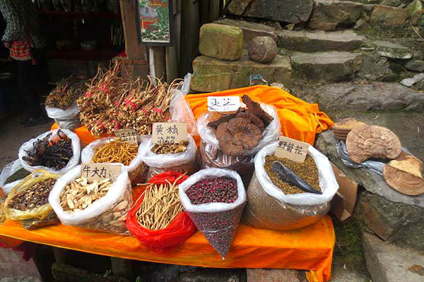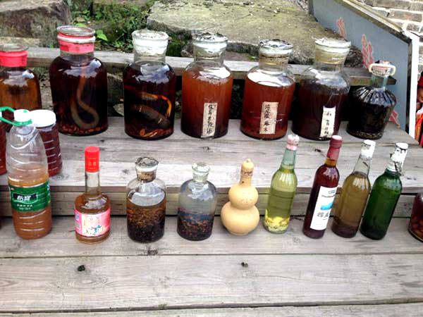 瑶寨的村民有摆出自家的山货来卖,土鸡蛋、腊肉什么的,还有自己酿的酒,可以买一些带回去。