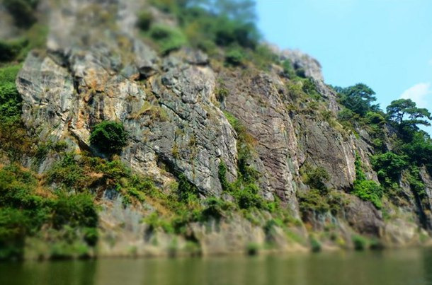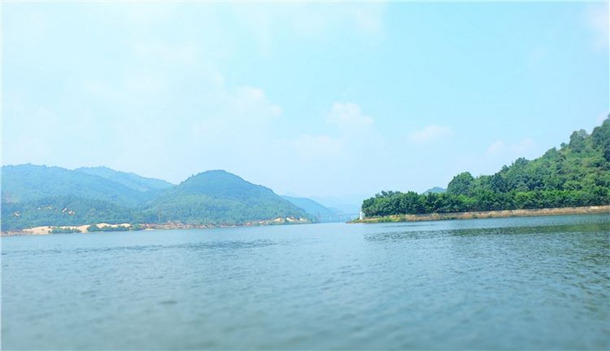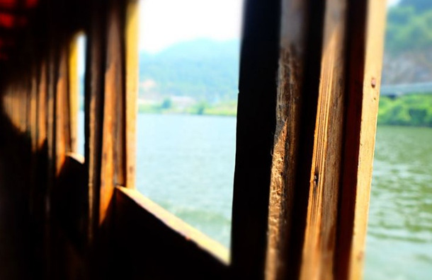游船在绿波中行驶,伴着阵阵清爽的河风,两岸青山衬托着绿水,此地虽无桂林山水哪般妖娆,却如一位沉默的处子般娴静,秀丽。