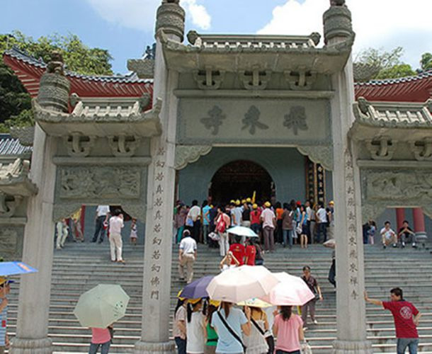 在小河岸之上,若隐若现地呈现出一硕大寺庙,名叫“飞来寺”这里游客僧侣不断,香火盛是兴旺.游历于山水之间,是激发灵气的好去处!