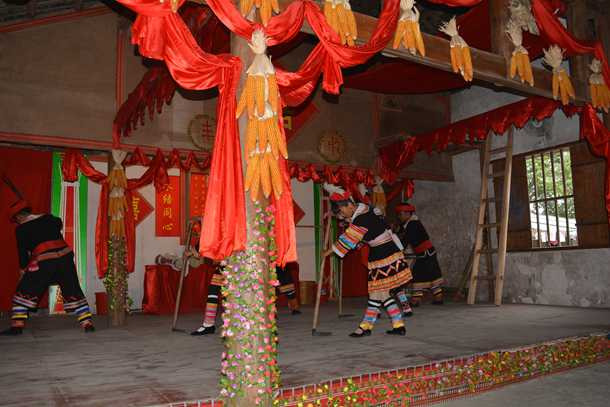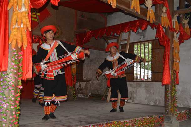 在寨子里游完了一阵,就听到打鼓、歌唱的声音,原来他们跳的是“长鼓舞”,他们在这里载歌载舞,好热闹啊!