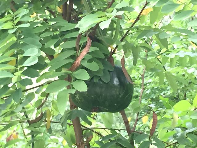 木栈道边上种了很多的瓜 瞧瞧 这是什么瓜