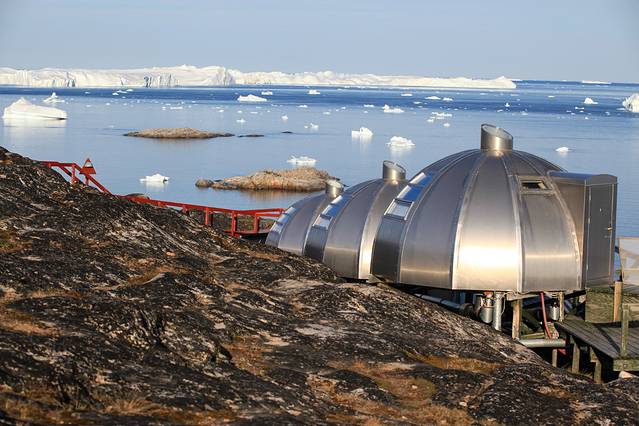 这里可供选择到住宿不多, 最好到酒店就算是大名鼎鼎到极地酒店了,四星级到酒店,也是绝佳到观赏冰川的位置,其外形似金属太空舱的客房,建在临近海边的岩石上,在房间里就可以欣赏大海、冰山和小镇上美丽多彩的小屋。 其次还可以选择青年旅馆,价格合理,都是来自全球各地的驴友,气氛融洽,而且还可以自己做饭。 我们这次选择的是 llulissat hostel, 400dkk 一天,另外租用床上用品还要135dkk。