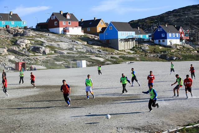 这个小镇上唯一一块平地吧,很难称得上球场。