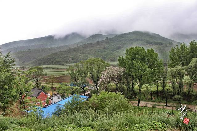 可能是真的累了,大巴刚驶出不久我就睡着了。等迷迷糊糊醒过来的时候,车窗外零星的雨点已经飘了起来。远处是一片黑压压的乌云。看来天气不算好。但这样阴雨的气候反而让这条大山中的公路明朗干净,两边的大山有节奏地向后退去,山上因为雾气而显得烟雾缥缈。全世界此刻似乎就只剩下这条看不到尽头的山间高速,沿着起伏的山脉无限延伸。一旁的路牌已然显出”嵩山世界地质公园“几个字。嵩山,这座一佛一道,完整保留下五代地质结构的圣山,四岳环绕,中原文化和华夏文明的孕育摇篮就这样带着一层薄薄的面纱展露眼前,神秘又丰富,婀娜又婉约。