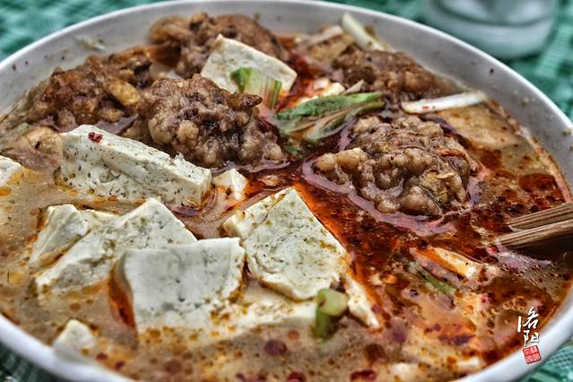 一大早起来,离开了旅店。又是一个天朗气清的日子。在丽景门对面的小摊位坐下,”早上豆腐汤“来了~和丸子汤其实味道差不多,而且早上的豆腐汤也可以加几个丸子。不过豆腐成了重点。食量大的亲还可以加一两个馍馍就汤吃。