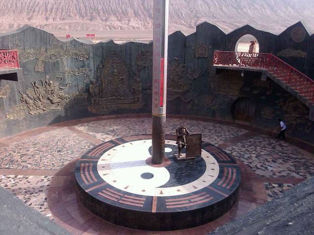 门票价格坑爹,四十元,就是和一群雕像合影,滑翔机一人380元。可以骑骆驼坐驴车去山脚再返回。经典就是铁扇公主的胸和金箍棒温度计