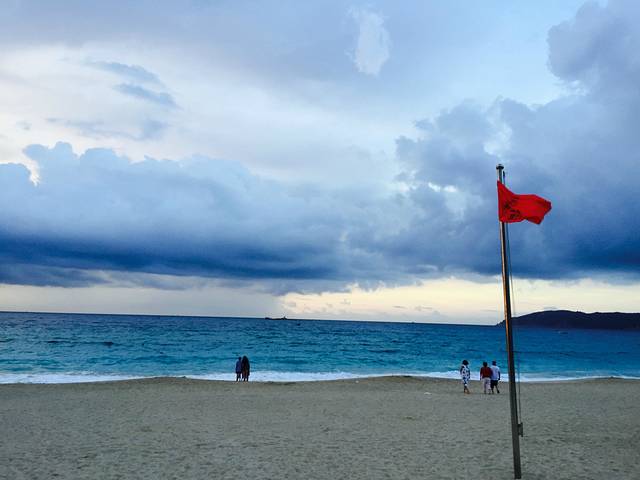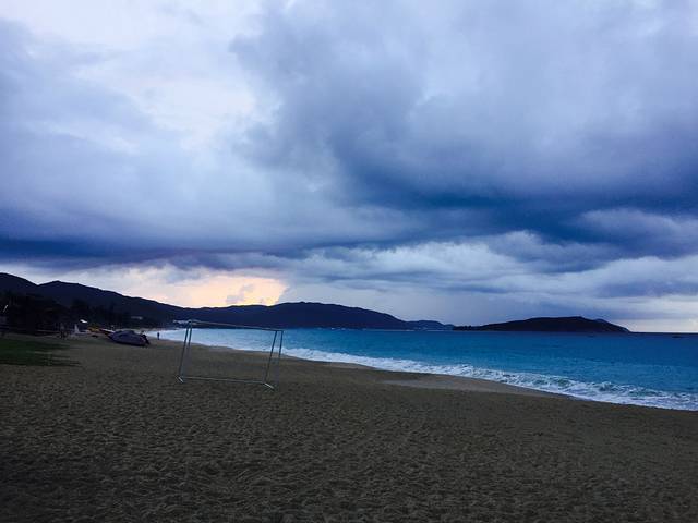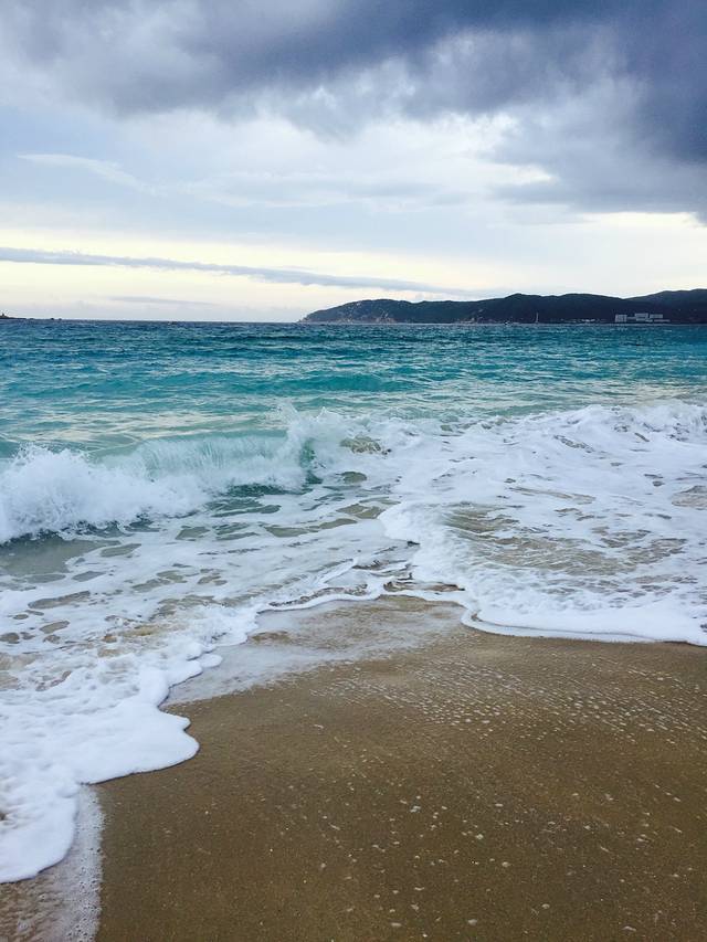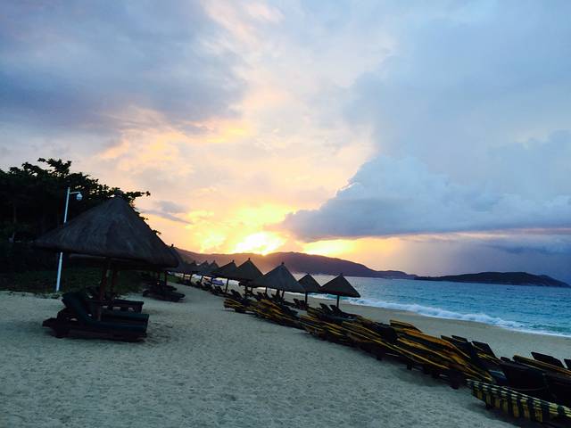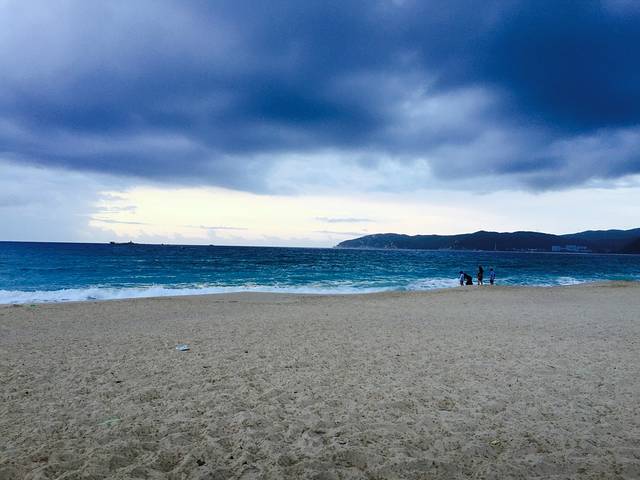 专门起大早看亚龙湾日出,是阴天,只看到一线霞光,不过,等海醒来,也是一种特别的体验。