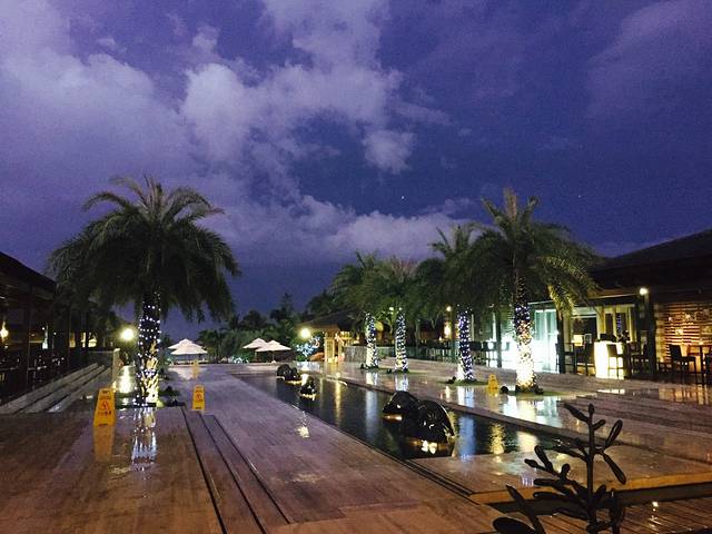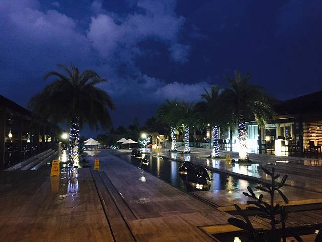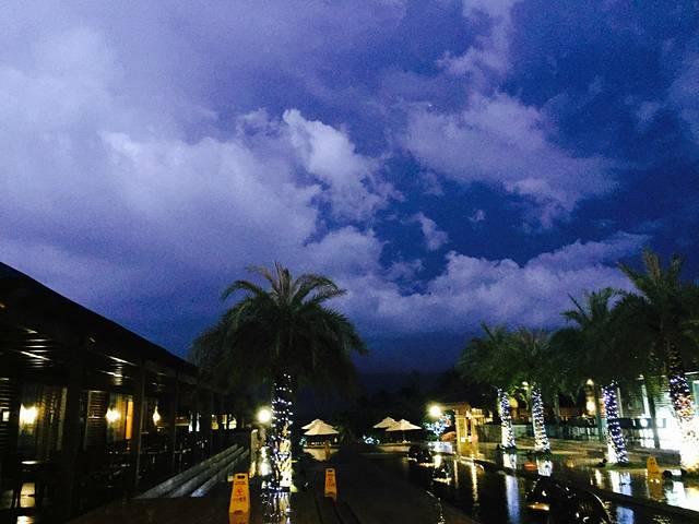 吃到一半遇上暴雨,从大堂往沙滩的方向望,闪电照耀整个天空,非常状观。