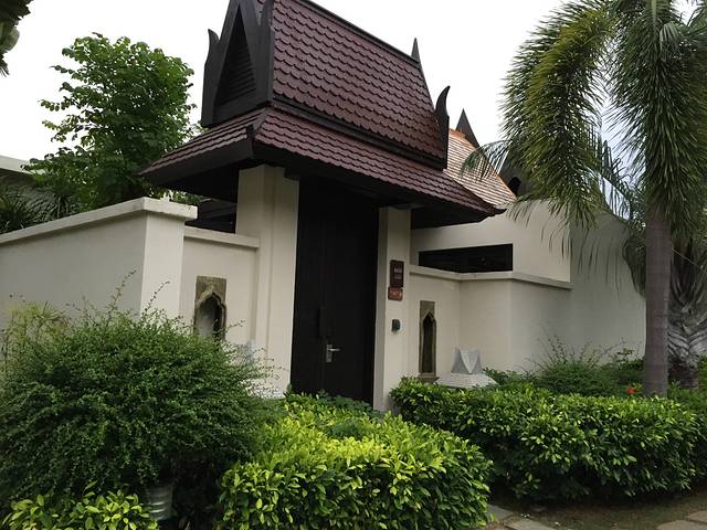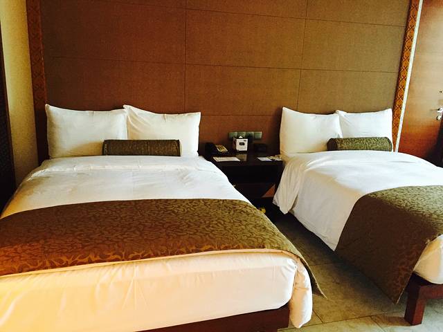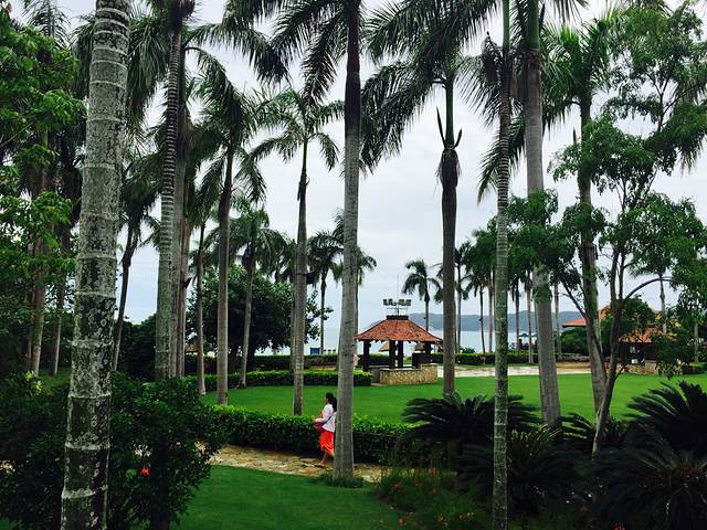 万达希尔顿逸林酒店位于海棠湾,开着车用百度地图导航直接到达,满眼的绿色,配上东南亚风格的建筑,度假的感觉一下子就来了。大堂的视野非常开阔,冲上云宵2中有一段就在这里取景。哪一段?去健身房一看就知道啦,24小时轮播。