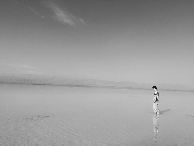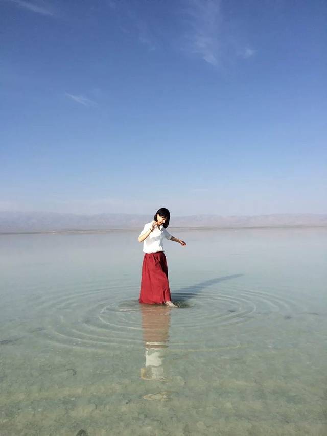 盐道上有很多人在卖鞋套,说是进湖要穿鞋套,我们就持观望态度,走到盐道比较远的地方,人少清净,拍照的时候不会乱入。赤脚进湖,盐粒很咯脚,感觉用生命在拍照。