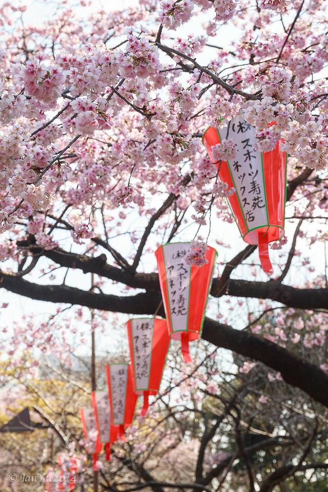 两人当即决定再往里走一走,反正没有门票。进去一瞅,虽然大部分樱花还是待开的状态,但是树上的装饰物已经装点一新,很多小日本也扎堆在树下坐了长长一排,看样子赏樱的盛会已经开始。整个步道间隔着有几颗已经盛放的樱花树,每颗下都是长枪短炮,可以想象届时真的满开了,会是怎样一副盛况。这个赏樱名所名符其实啊。虽然我没有看到它的最佳状态,但已然心满意足,春天,樱花已经在我的心里开了个满怀。