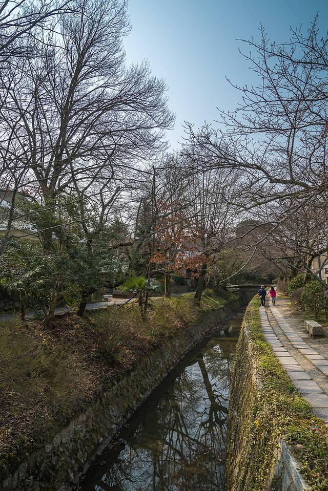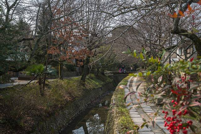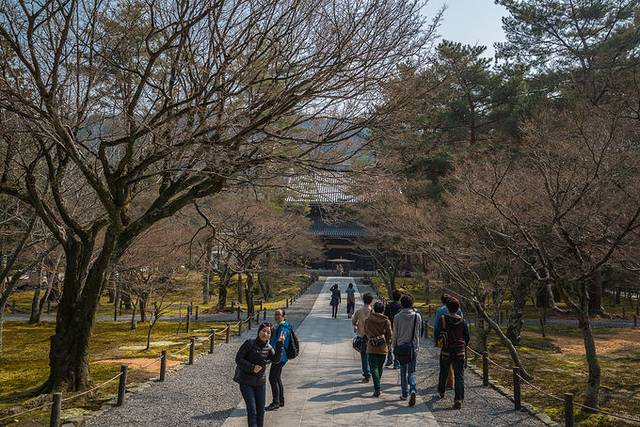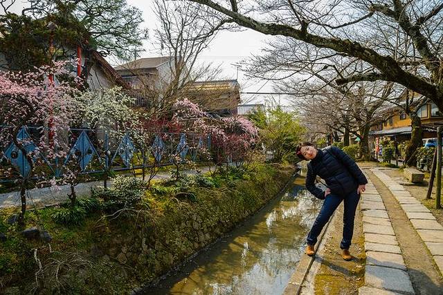 银阁寺与南禅寺之间有一条大名鼎鼎的哲学之路,据说是有位名家一直在此思考而得名。全程不算短,骑车都要十来分钟,一旁是条比较大和深的沟渠,另一旁则是石板小路,两旁应该是有不少樱花树,再过两个星期必定是美不胜收,此时也已经是风光无限好。在弯弯曲曲的小路上骑行,好天气好风景好心情,是这段路最大的收获,脚头好的不妨走走,或者像我们一样骑行吧(笑~)