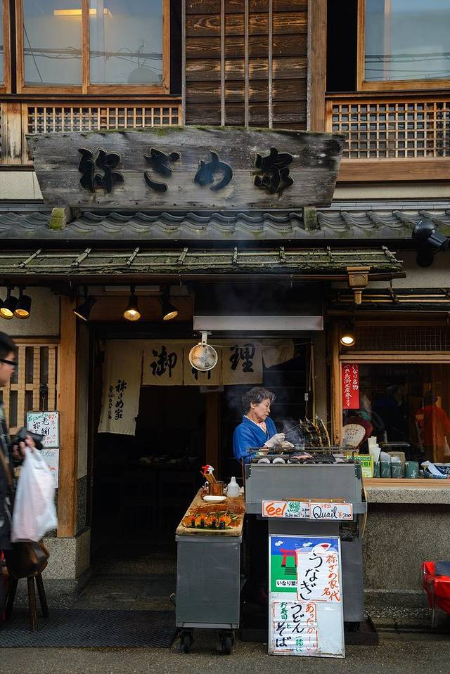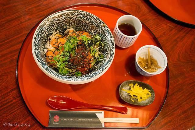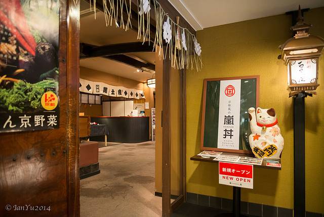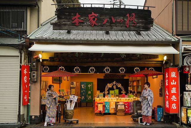 看完就来到了岚山大街上,姐兜商品街都兜得烦了,直接去渡月桥,所以没去小气少年推荐的那个三忠豆腐,而是少有的随机找了一家吃海鲜丼的餐馆,就叫岚丼好像。店堂布置的很有氛围,外面还有卖特产的地方。新鲜的鱼生,下面微热的米饭,再加上个蛋,很多海苔,拌一拌,西里呼噜下肚,管饱又好吃,不贵,定食1000多一人吧。