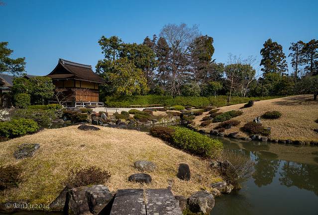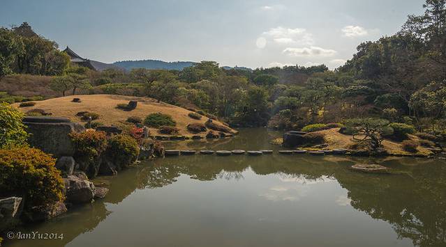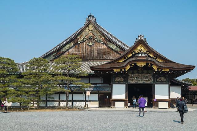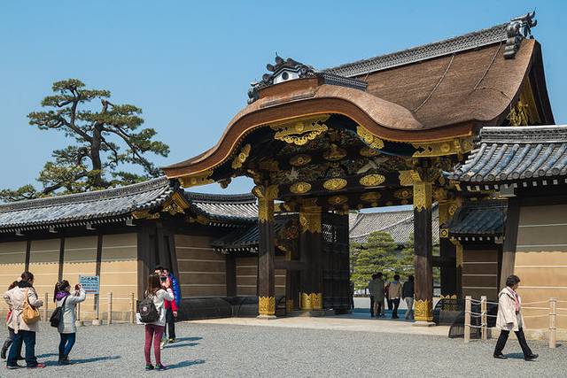 二条城就是德川家在京都的据点,所以还是气势非凡,那些个雕梁画栋,飞檐尖顶,无不呈现出皇家范。最大的二丸殿里珍贵的画作无数,颇有看头。外面还有三个庭院,樱花盛开时能看到有“樱花王者”称誉的八重樱,所以也是赏樱名胜,我们依旧早到了两个星期,晒~~二条城还是比较有看点的景点,所以建议多留一些时间,我约了下午的和服变身,不得不先撤了,好吧,我承认这一天略过紧凑了,嘿嘿嘿嘿。