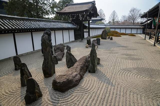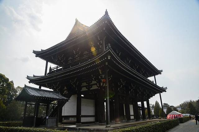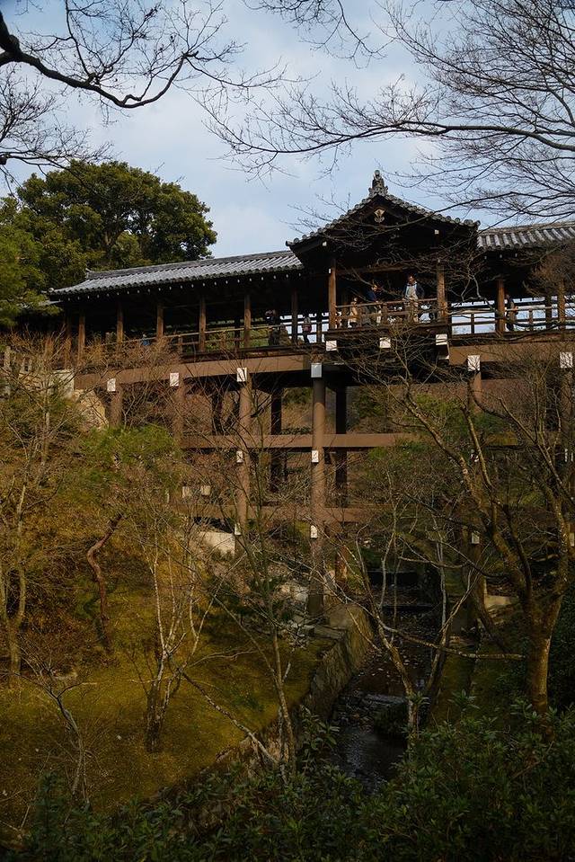 看看时间尚早,决定继续京阪线干掉三十三间堂和伏见稻荷之间的东福寺。鸟羽站出来的那段路很日本,还有放杆子下来等的火车闸道,感觉像在电影里,呵呵。东福寺是赏枫名胜,3月底去并不是好时节,但即便如此,也以其精妙的布局惊艳到了我们,可能也是我们初看日本庭院的关系,方丈庭院(400元)和通天桥(300元)都能看到那条届时红枫盛开的沟渠,想像了下都觉得美,即便时间不对,我觉得也值得花钱一看,毕竟此时人流少嘛。