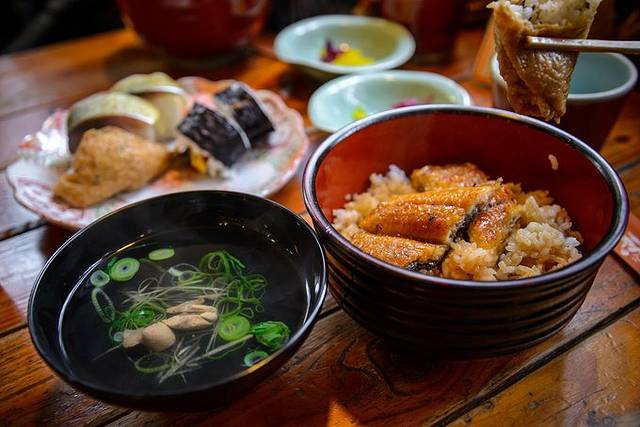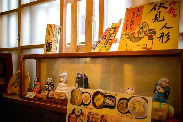 时间已经接近2点半,同志们再次饿得头昏眼花,离我们的中饭点百年鳗鱼饭祢さめ家也只剩下1.4公里的步行距离而已(黑线)。于是一众人望梅止渴,歪歪扭扭,步履蹒跚的走到了伏见地区,一头扎进了鳗鱼店,在饥饿中又点了一堆吃食。啊~~~那鳗鱼真是香甜可口酥烂啊~~~那个乌冬真是鲜美有嚼劲啊~~~那个豆皮真是微酸地爽滑入口啊~~~那个寿司拼盆,厄,好吧,略差一些,对腌过的鱼,口感还没习惯撒。结账8000多,其实吃不了,只是饿过头了,呵呵。
