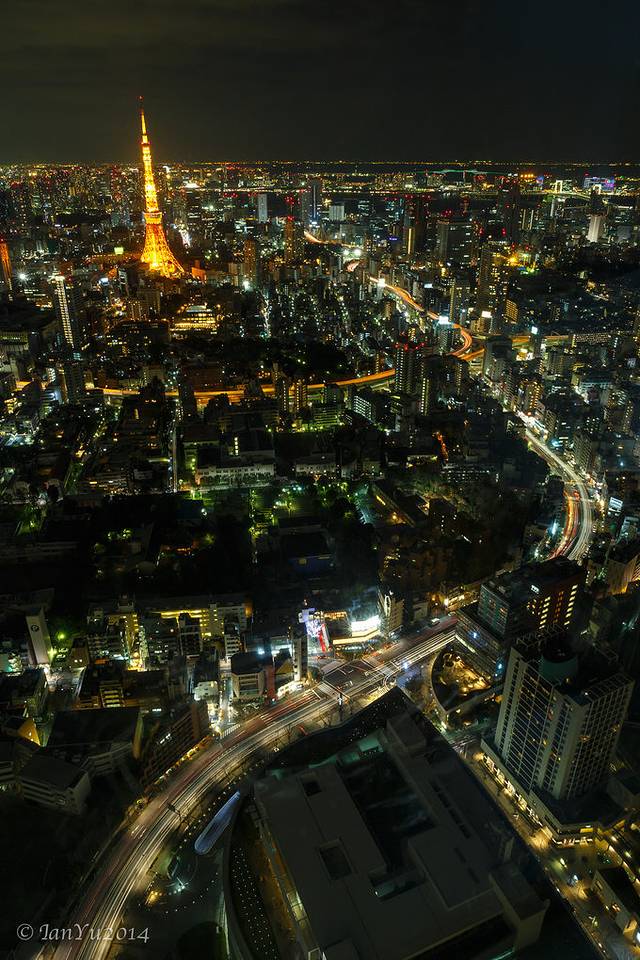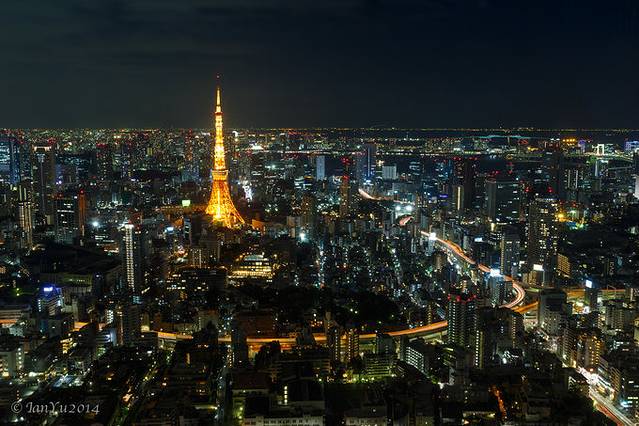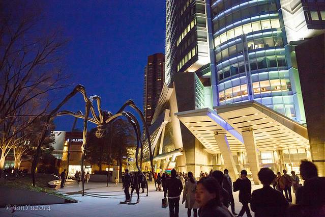 走到表参道,其实这段路不算长,只是我们大包小包,又连续行军了多日,都有些累了,匆匆略过这日本的香榭丽街就下到地铁去搭银座线再换大江户线去日本夜景最佳观测点六本木啦。门口的大蜘蛛很是醒目。虽说东京铁塔也能看,但一个很有道理的攻略讲铁塔人多,而且在铁塔里看不到铁塔,哈哈。真是有道理,我们上到52楼,透过观景玻璃往外望,铁塔是最为璀璨的,其他方向的夜景与之相比都黯然失色。更好运是没等多久,就轮到一个观景位,众人赶忙坐下歇歇脚。某人背了一路的三脚架终于派上用场,一阵狂拍。望着外面璀璨的星光,美则美矣,还是觉得这1500的门票有一点点贵啊!!!不过最后看到雷克萨斯的一个跑车展览,音响和视觉效果都极赞,算是值回票价,嘿嘿。