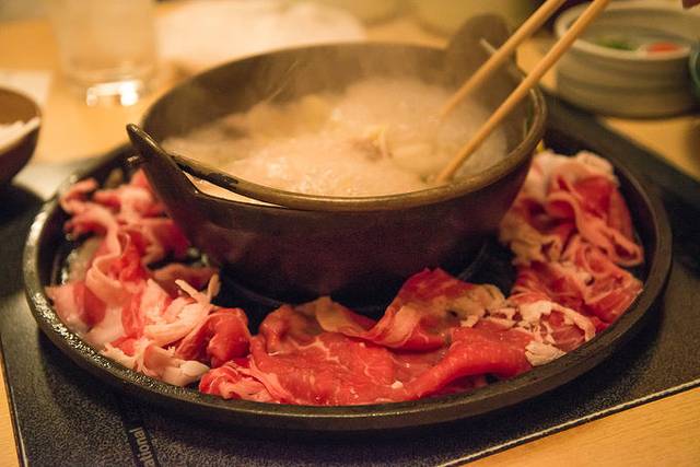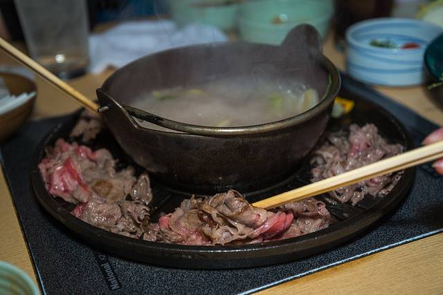今个的大头这就算完了,介于中饭吃的马虎,就决定带病号桑吃顿好的,骑车回到河原町,又是一路好像南京路的骑行,战战兢兢的我哦,不提也罢。总算是到了目标店——牛禅!看名字就知道是吃牛肉的,由于是放题店,四个人只能点同一种锅和同一种牛。事先做好攻略,选了涮涮锅和铁板兼而有之的套餐。很快带到座位上,很贴心的是下面能放脚的榻榻米,中间是个涮锅,旁边是一圈铁板,反复确认肉可以随便叫之后,就开吃啦。哦,对了,饮料要另点,当然你也可以皮厚一直要冰水,比如我们,哇哈哈哈。