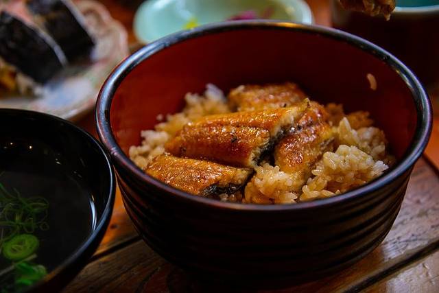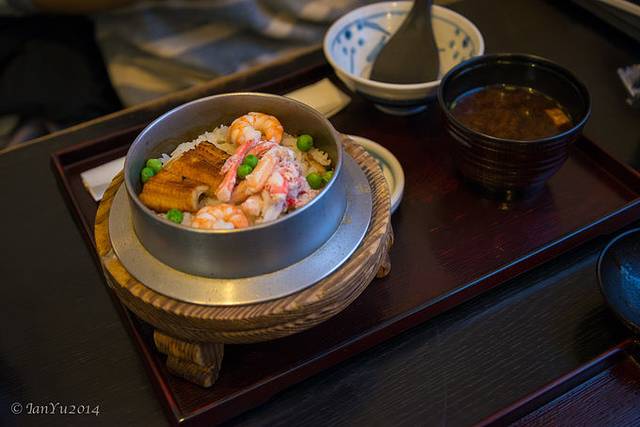 好不容易入了座,继续等饭,桌面上有如何吃这个釜飯的日英文的讲解,大概的意思就是说这个锅能持续发热,所以呢你先舀一碗吃,然后剩下的让它继续加热,这样里面的饭呢就会越来越焦,最后呢就有喷香的锅巴吃咯。志津香我推荐吃单独的锅仔就行了,不用点套餐,端上来就多了一个日式的小菜而已,一个一千出头,一个要近两千,性价比不高。口味么我觉得略微寡淡,这锅巴么也没啥惊艳,但吃饱吃好是没问题的。而且确实是名店,出去时队伍已经老长,日本人还不少。