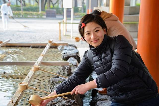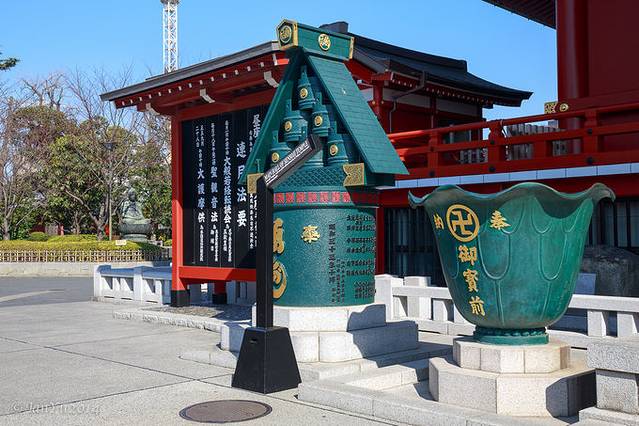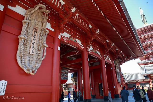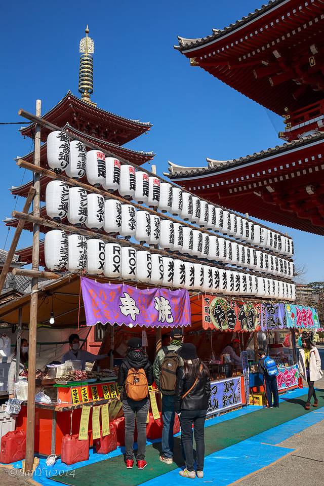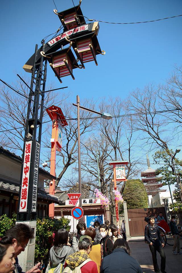 去得尚早,仲见世街上的商店还未开全,就先去正殿逛逛,从京都过来的人,呵呵,确实没啥好多看。一直看人抽签的玩意倒去试了一会,丢了100块,诚心的摇摇签筒,费劲的倒出一根签,不像天朝签上就有签文,它是一个数字,你再根据数字去墙上找相应的小抽屉,从里面取签文。拿出一看是个吉,嘿嘿,兴高采烈撒,签文么自然是看不全懂,有个吉我就满意啦。