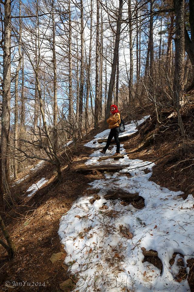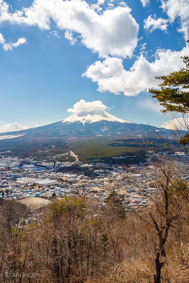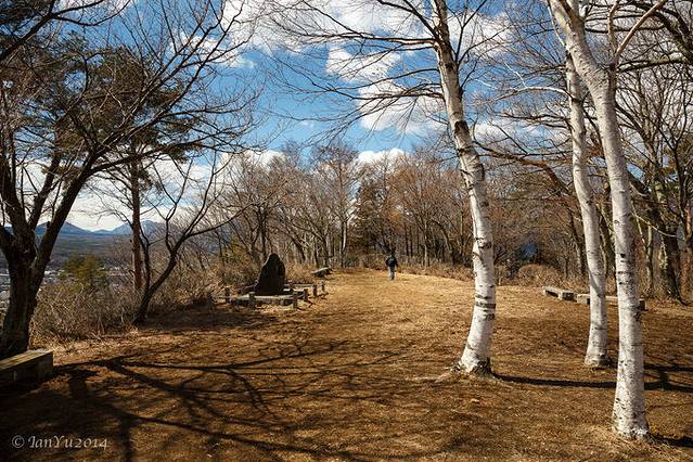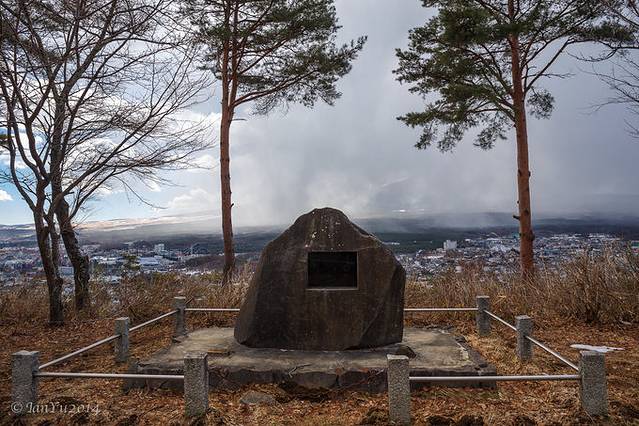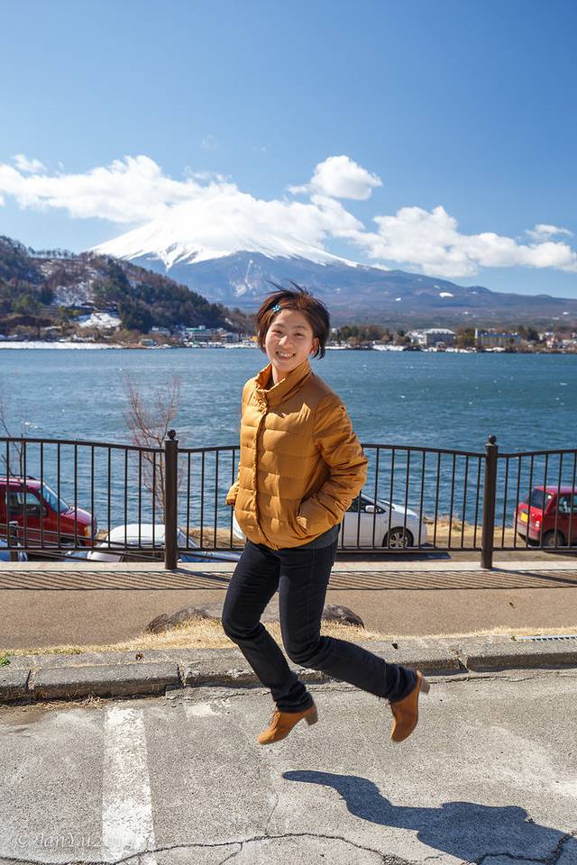 爬山是我的强项,和云南梅里的雨崩相比,这河口湖的天上山算个鸟?虽然山路两旁还有不少积雪,风大得我不得不用围巾缠头挡风,但一点不妨碍登高而上,反倒是平添乐趣。一路轻快,后续人马倒是叫苦连天,呵呵。一路上看到不少长腿老外下山,果然是老外会玩啊,hiking精神更足,赞!大约半小时多一点吧,我率先到达了山顶。乖乖,绝对值得这半小时的攀爬啊!为什么?因为缆车暂停,所以山顶上没人啊!!登高台、望远镜、可爱的动物雕塑、敲击的心形钟都没有人啊,任你玩啊!而且富士山好近好近,简直是近在眼前啊,绝对是个观富士山的好地方,山下的河口湖也清晰可见,心情那个雀跃啊!