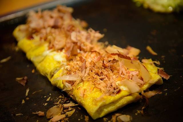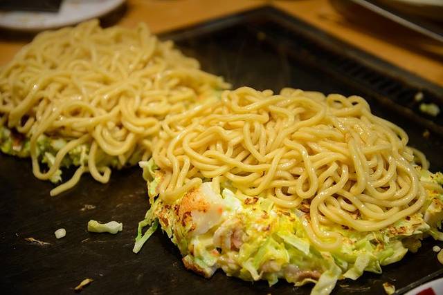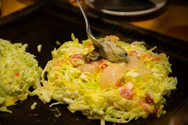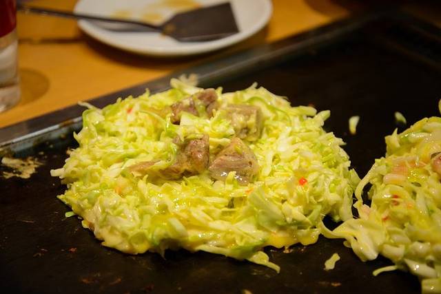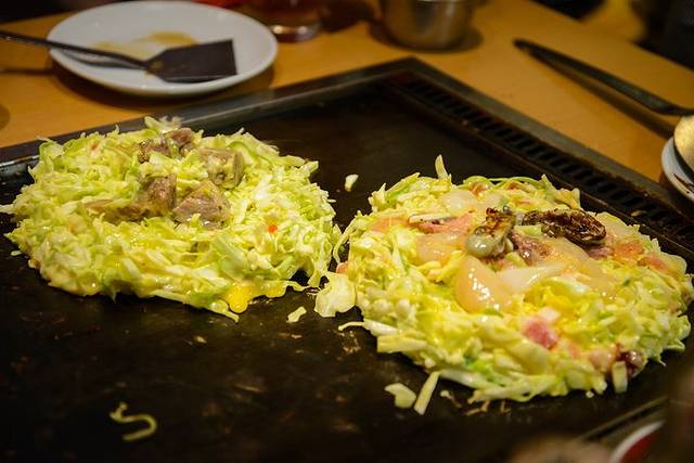 兜兜逛逛再不吃晚饭同伴都饥饿难耐要抗议鸟,国航中午居然只发了个面包撒,于是去了大阪的美食街——道顿堀,远远就看到那个跑步的格力高了哟。道顿堀就是道顿堀,能说上名号的餐馆就不计其数,但因为我们只在大阪停留这一晚,所以倒也不用纠结,在大阪不吃大阪烧更待何时?在千房和鹤桥风月中选了后者,第一名字比较诗意,第二据讲是有人帮着弄,甚好。8点半到达,门口排了十几号人,不禁感叹这一天就是在排队中度过的呀,好个地少人多的国家啊。终于轮上,已经饿得有点前胸贴后背的感脚,抓起菜单就点,没过多久一碗碗菜伴着肉加上蛋的糊状物体就被倒扣在铁盘上,香味扑鼻,服务员叫我们稍作等待,就撤了。好在另点的带子自己炒吧抄吧撒上柠檬很快就熟了,香嫩鲜香,一众人大呼过瘾。吃完了,也没见服务员来处理我们的各种烧,于是响应毛主席说的“自己动手丰衣足食”的口号,对着图片一阵瞎弄,几个人分分吃了,还很美味哦,同行一位不吃生食的朋友瞬间对其在日本的吃食放心了不少(笑)。此时,一经过的服务员对着我们的作品脸上的表情,从惊愕到不忍到欲语还休到放弃离去,所以很可能我们并没有吃到真宗的大阪烧吧(大笑)。但还是很愉快的用餐体验,餐厅氛围也很轻松,价格也不贵,点了很多小食的情况人均2000块。