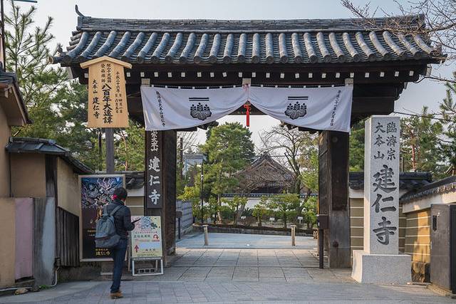 民宿很便民,有提供自行车租赁,很便宜,500,可惜只有两辆,所以一早去别家再租两辆。又起了个大早,在微凉中走去自行车租赁点,路过了据讲是京都最古老的寺庙——建仁寺,大门敞开,于是进去溜达了下,古朴而安静,迎面走来手拉手的小学生,在这样的画面中显得很友爱。很快找到租赁点,价格翻倍,1000,老板很贴心的帮我调低了座椅的高度,坐上去一踩,好车啊,避震换挡都很到位,骑起来及其轻松,风驰电掣啊,还不经意间经过祗园的花见小路,大赞!!但是我居然一张骑车照都没有照,失误啊!!