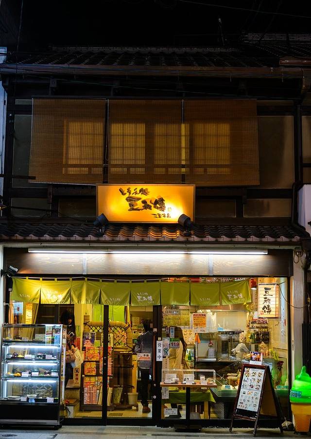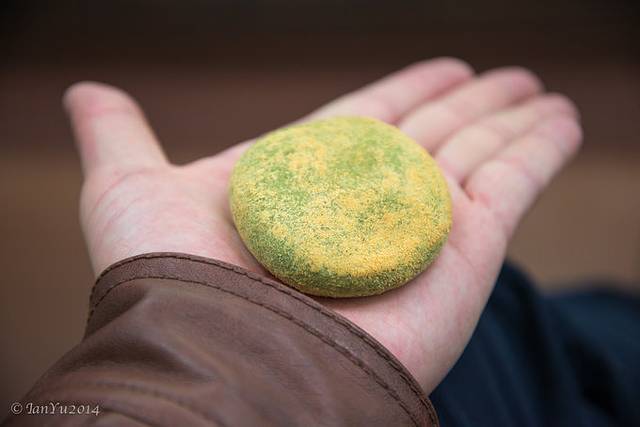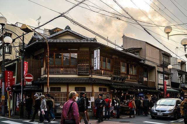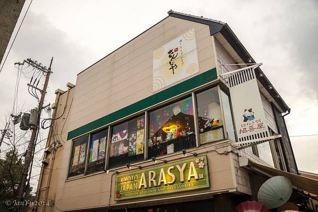 出了清水寺,就是号称相当日本的产宁阪、三年阪了,走人多的那条岔路就是,原谅我路感极差,想不起到底是左面那条还是右面那条了,很多时候跟着人走就对了。这些个阪上都是卖纪念品和小吃的,很好兜。我再次尝了个抹茶冰淇淋,还是觉得不过耳耳,买的牛肉土豆饼倒是可口的很。纪念品嘛大名鼎鼎的清水烧是隔几步路就有啊,清水烧就是这个地方烧制的瓷器,从茶杯到碗、壶不一而足,价格么也是相差很大,品相好的都要上万一个。我们凑个热闹,挑了个花色素雅的对杯,2000左右吧,回家泡茶时可以装个逼撒。没时间去宇治,宇治的抹茶买个两袋吧,话说我虽然对抹茶制品不感冒,但抹茶粉冲茶那个清香感还是认可的。