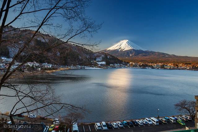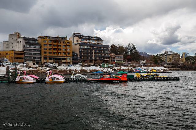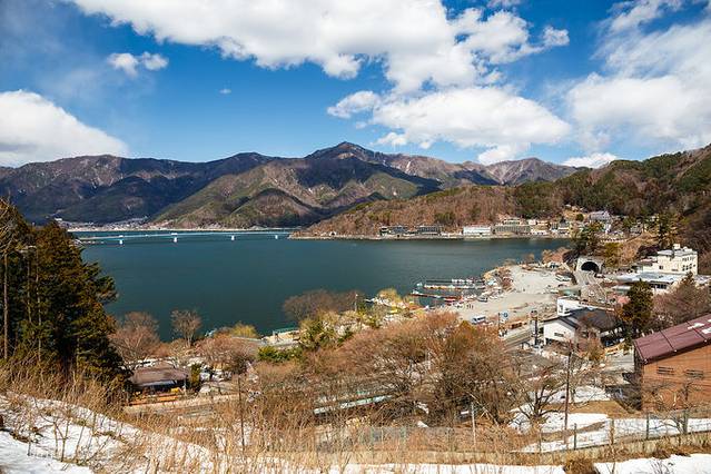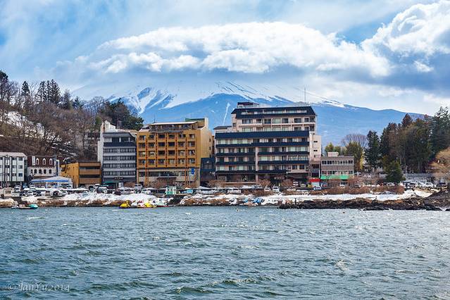 话说这个1470块的车就跟我们公交车长一个样,怎么讲,就是郊区线啦,走的也是乡间小道,一站一站极多。不同之处在与车头有个电子牌,告诉你哪站上来的话到下个站要支付多少钱,所以也就是你其实根本不用买票,下车付钱也OK?好么,又涨知识了。每个座位旁都有下车按钮,很多当地人下车前都会按提示司机有人下,要么就真不停啦。我们到终点站河口湖,倒是不用惦记,小睡休息了下。结果醒来发现道路两旁尽然白雪皑皑,天,在京都最高到过20度,而此时手机里显示低温已经在零下了,好大的跨度啊!!