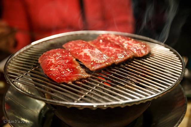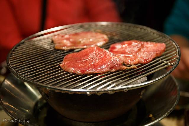 地铁上休整了一会,日本地铁空且都有位置这点真心好,每次坐地铁都是休养生息的大好机会。出了新御徒町,如google map所示,没几步路就到了,一路踉踉跄跄到店里,店内空座不少,暗松一口气,一屁股坐下。但震惊的在后头,服务员直接跟我们中文了,要西,敢情是中国人开的啊。来也来了,坐下吃吧。这烤肉的感觉有点像韩国烧烤啊,一看菜单,果然,有石锅拌饭啊,再次没有想法。都饿得如狼似虎了,就挑什么极上啊之类的肉点上,叫了饭,就等开吃了。
