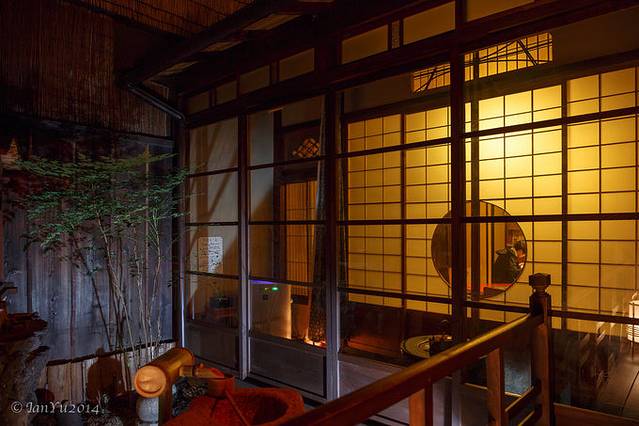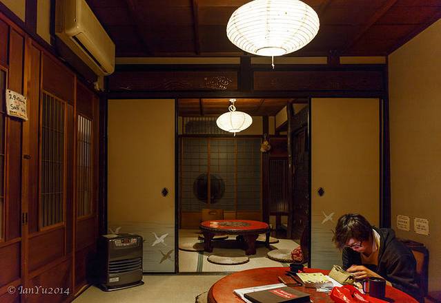 好,最后说一下我们京都的住宿点——京町乐座!由原来的茶屋改建,真真正正的日式风情,真真正正的日式建筑,全榻榻米米的房间,咯咯吱吱的木楼梯,移门隔断,小庭院加回廊,请问还能比这更日本吗?关键地理位置也很棒,祗园中心,京阪线祗园站出来一分钟哟。房间比起酒店那也是大了不少,6块榻榻米大小,两个大箱子打开躺平无障碍,除了小桌子,没啥家具,可以躺在地上横七竖八随意翻滚。工作人员9点半下班,用密码开门,自由的很。当然最最重要的就是便宜啊,7000出头一间房,京都的中心位置,还挑剔什么?