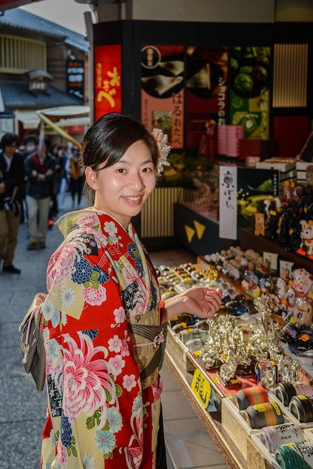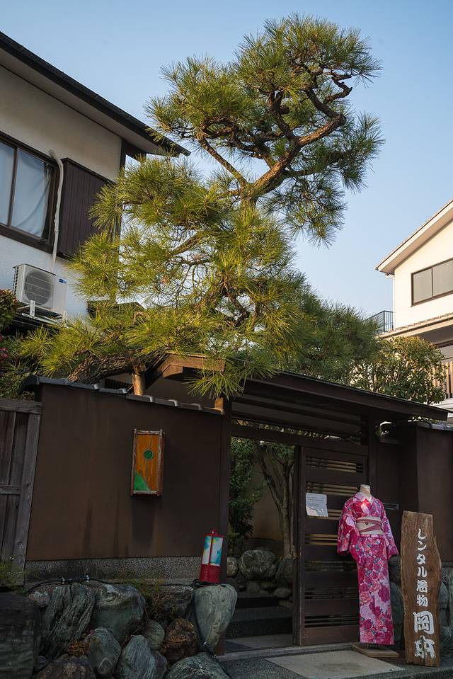 到冈本后被带入里间,穿穿费时间,脱起来倒是三下五除二,穿自己衣服才最舒适啊。讲讲整体感想:以整个和服换装来看,不算最严谨,同伴没被要求脱打底衣导致衣服后脖子处露出了一截,而且多走了会后也感觉略微有些松开。当然沟通语言不顺畅也是个原因,感觉为日本妹纸服务时更加上心。头发可选样式少,头饰也显陈旧,也未给出贴心的建议,店大客多服务上也略差了。但如果你只是抱着好玩的心态,过一过和服瘾,这家也没啥大不好的地方,款式选择还是蛮多的,服务的人手还算足,速度很快,也很能接受我们这些异国的游客,这是一个优点。