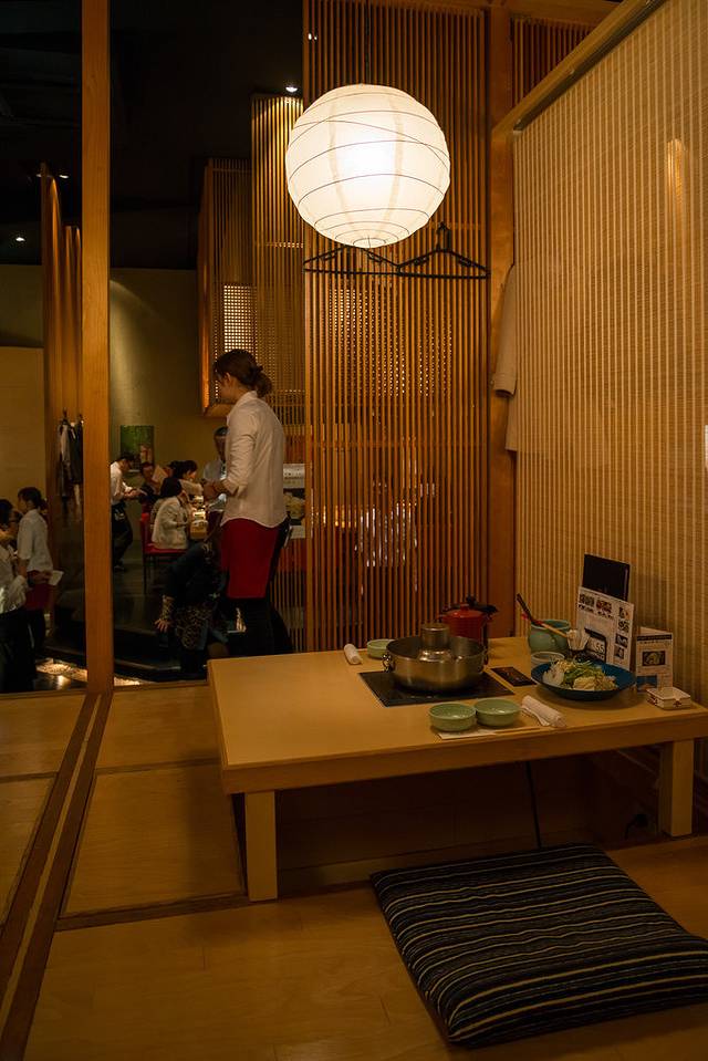 话讲我一直觉得这种摆嘘头的日式料理么形式大于内容,但这次要矫正下,大部分其实还是不错的。例如刺身,完全的顶呱呱,鲜美的面条、菌菇汤、涮锅的肉也是非常可口的,少部分不明所以的腌渍物、酱菜等,眼睛一闭也就下去了,反正也就一小口,呵呵。吃到最后真是吃不动了,量虽小但是以品种取胜啊,东一口西一口,居然也很饱了。最后的甜品真是好看又好吃。对了,男同胞叫的两瓶酒、我们叫的饮料是要另外付费的哟。