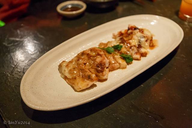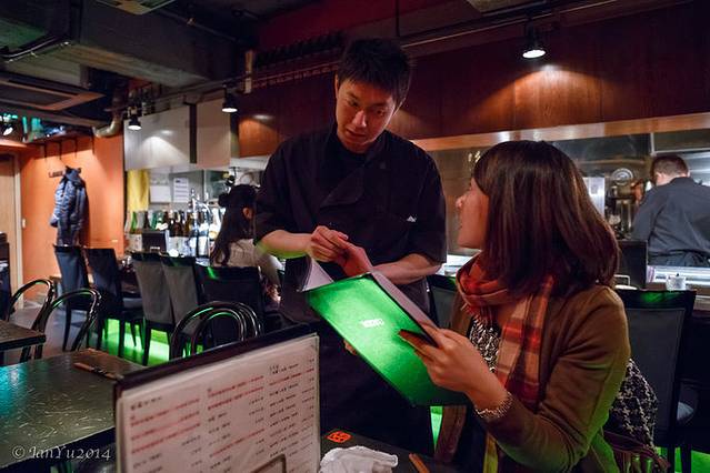 同志们又抱怨肚子饿了,唉,人在外三急真是忽略不了。招呼部队开路晚饭去了,目标大大有名的据说是《kill Bill》里面取景的“权八”去也,在东京很出名的一个居酒屋。离六本木不远,走过去幽静异常,略感奇怪的拉开了门,MY GOD,里面简直是另一片天地啊。老外扎堆啊,烟雾缭绕啊、热火朝天啊,还在张口结舌,一个洋气的妹纸走了过来,流利的英语告诉我们没有预约的话估计晚上十点才能落座。要西,看着前面排长队的老外我们干净利落的撤退了。LG讲,这家店感觉太西化了,略有点谄媚老外,不吃也好,啧啧,我觉得挺可惜的,此行吃烤串的最后机会诶。
