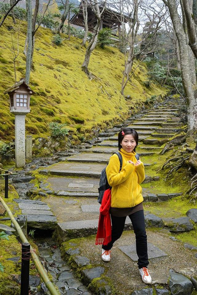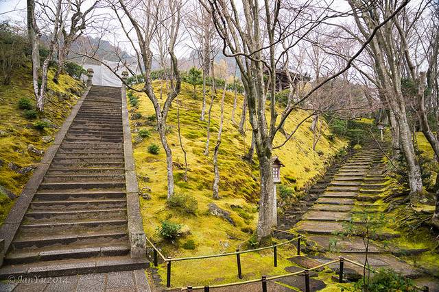好在我RP不错,车到岚山站风雨皆停,一片雨后的清朗让人心情愉快。岚山站离常寂光寺很近,如若不看这个点,坐到终点站嵯峨野离竹林更近哦。跟着google map在一条清幽的小道上没走几步就是常寂光寺了,同宣传照里一样悠长的步道向上,可惜同样没有火红的枫树应衬,好处么就是完全没有人啊~~400块的门票,就我们仨包了场,在幽静的寺庙里随走随拍,依山而建,招牌似的精致,又是一个我喜爱的寺庙。再美的景,人一多就全无感觉;再小的景,独自欣赏自成氛围。