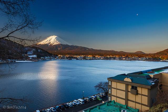 LG跟着爬了起来,抱怨没能更早起来拍日出。拉倒吧,昨个心黑泡了三回温泉,结果体力消耗过大,倒头就睡的人还看日出呢,鄙视。既然醒了,就趁早再去泡温泉吧,多赞啊。此时LG又出花头,问能不能去露天风吕拍照,那里拍富士山的角度最棒,因为毫无遮挡,正对着湖。我说应该可以啦,因为看到游记里有人讲悄悄去拍也OK拉。结果这傻缺带着新买的6D外加扛着三脚架去也,擦,我的意思是带个手机啥的去拍好嘛!!!你这动静,好吧,被人打出来我不管……