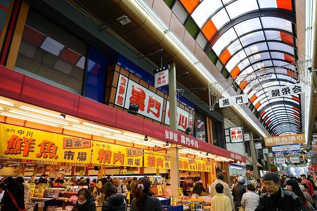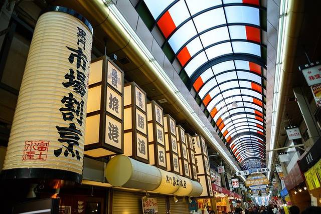 出发第一站黑门市场,其实最主要是去看旁边那家号称大阪最赞卖中古相机的店咯,顺带去看看大阪的厨房。厨房很干净,卖鱼的看不到血水、闻不到腥气,不知道怎么做到的,很牛。眼馋买了新鲜的鱼生拼盘(1980块)和草莓(384块),鱼生很多但酱油给少了,草莓还算甜美,都不错啦。
